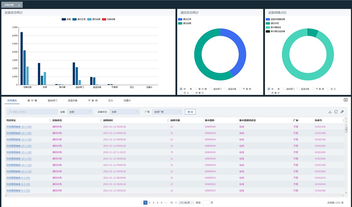 集抄系统可记录供热链路各层级下计量设备的实时数据及历史数据,支持对相关设备进行实时调控,及时对各链路设备的运行状态和运行时数据进行了解。