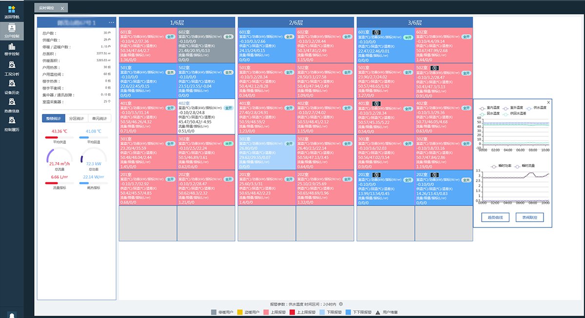 ▲ 整体展示某楼宇级住户用热及异常情况▲ 对用户室温进行调控